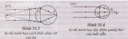b) Tật cận thị thường được khắc phục bằng cách đeo kính phân kỳ để làm giảm bớt độ tụ của mắt (Hình 31.3).